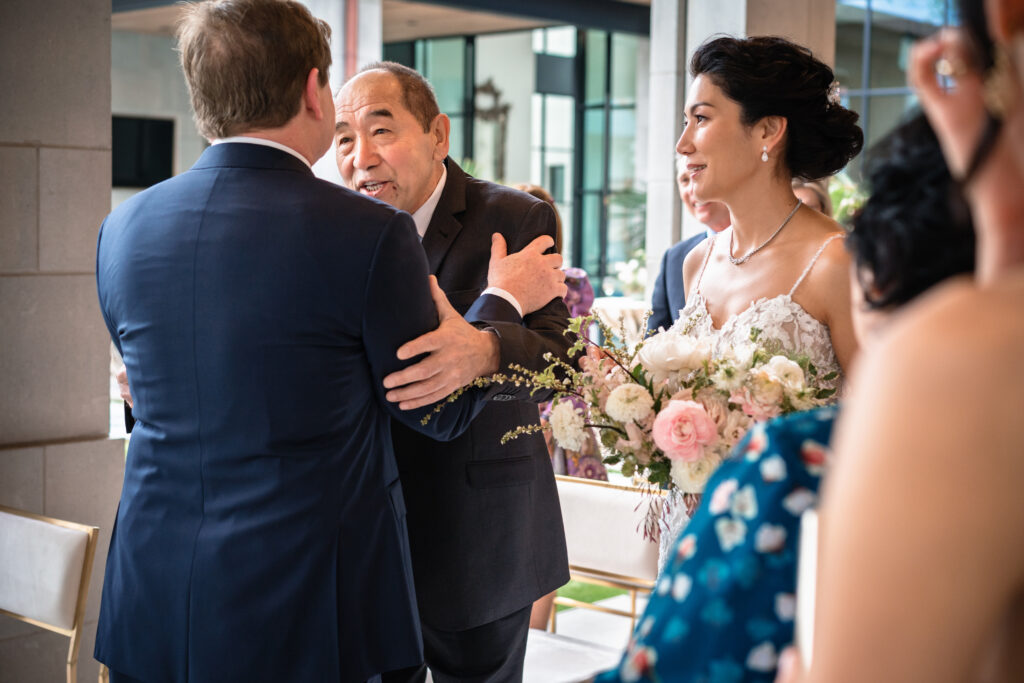 Geoff and Aigul exchanged vows poolside, surrounded by lush floral arrangements that transformed the space into a veritable oasis of romance. If we blinked juuuust right…it almost felt like there was no way we were still DFW but instead at a destination wedding getaway to Aruba, Tahiti, Bora Bora or Maui.