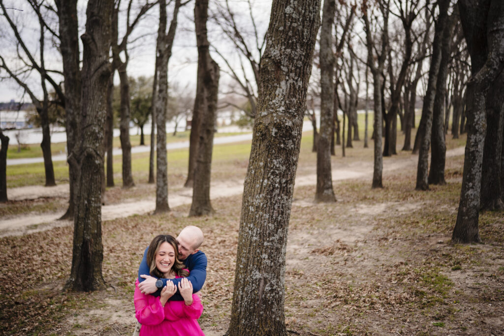 April & Nate’s Windy Dallas Engagement Session at White Rock Lake
